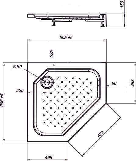 - Душевой поддон изготовлен из высококачественного акрила, усиленного фибергласом