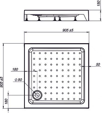 - Душевой поддон изготовлен из высококачественного акрила, усиленного фибергласом