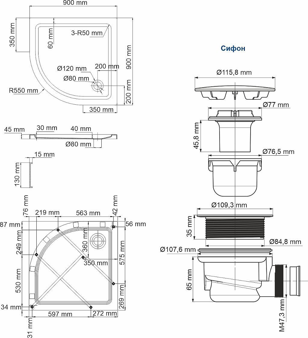 Поддон акриловый WasserKraft Isen 900*900*175 мм. Цвет - белый, материал - акрил. В комплекте металлический каркас, регулируемые ножки, съемный экран и сифон Ø 80 мм.