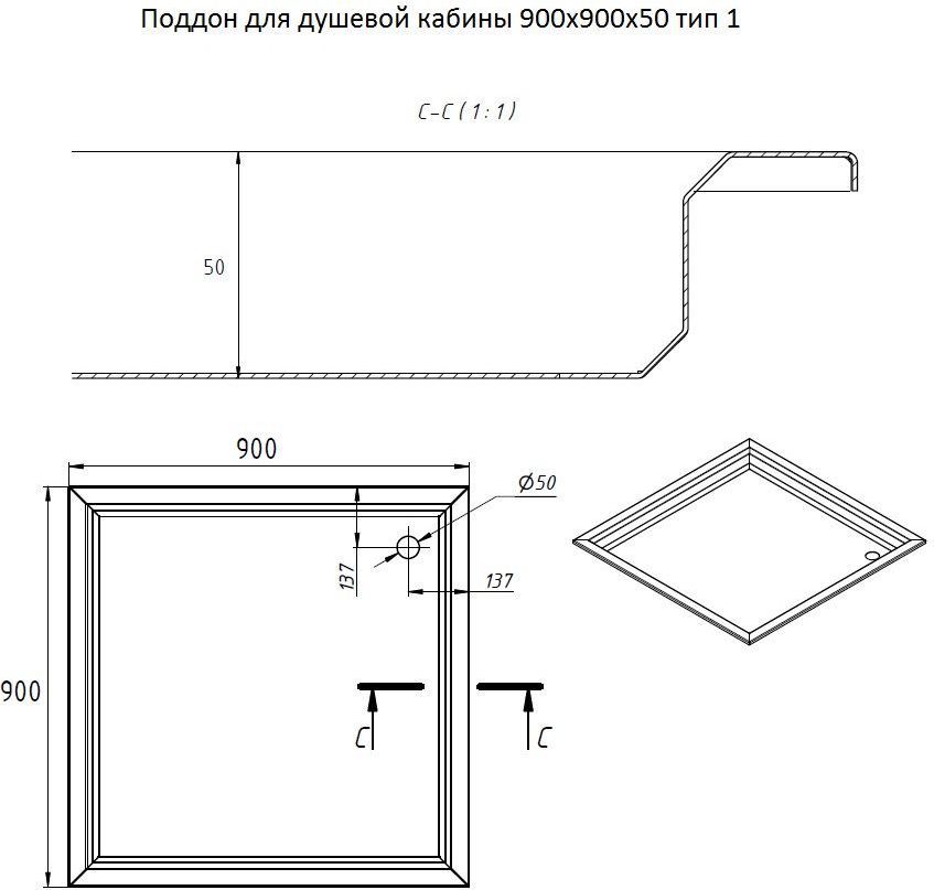 - Тип: поддон душевой (встраиваемый)