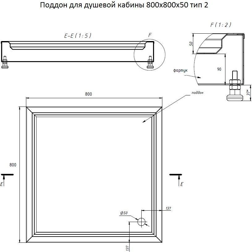 - Тип: поддон душевой (накладной)