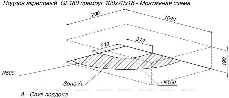 Поддон Aquanet GL180, сифон в комплекте, размер 1000х700х190 мм. Цвет белый.