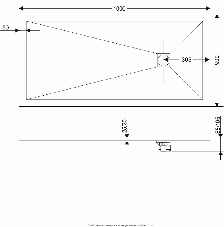 - Технический уклон поддона для стока воды (на фото изображен более выраженно для понимания направления слива воды)