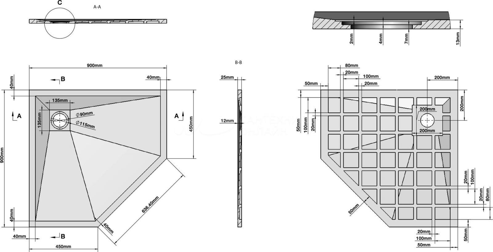- Технический уклон поддона для стока воды (на фото изображен более выраженно для понимания направления слива воды)