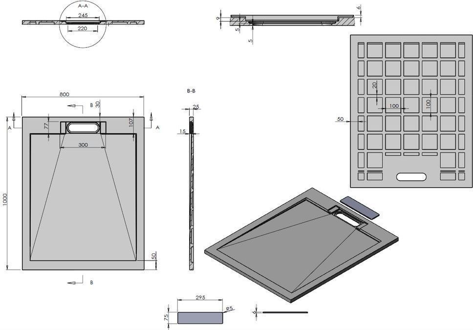 Поддон каменный Vincea 1000х800х25 мм. Цвет - антрацит, материал - искусственный камень. Сифон приобретается отдельно.