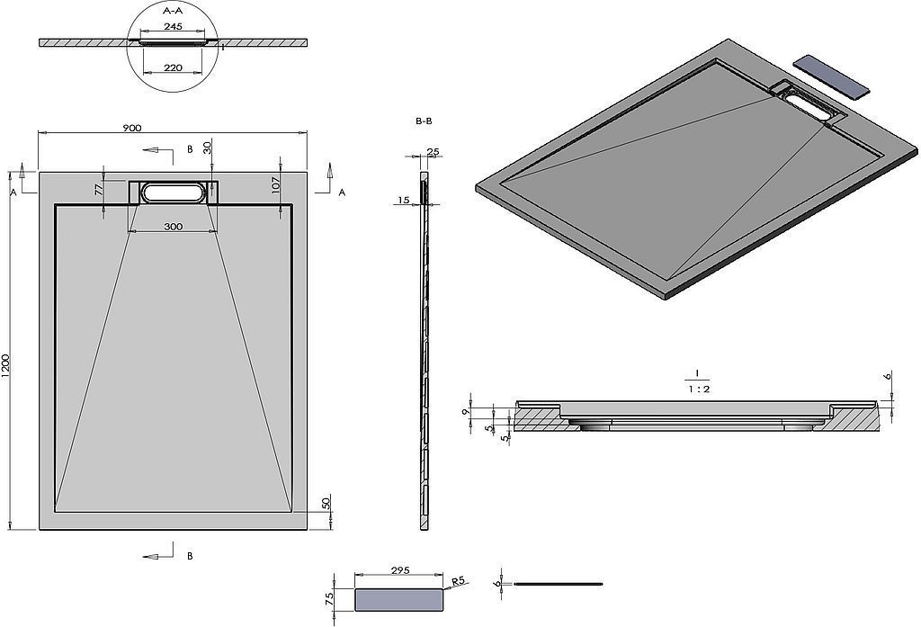 Поддон каменный Vincea 1200х900х25 мм. Цвет - антрацит, материал - искусственный камень. Сифон приобретается отдельно.