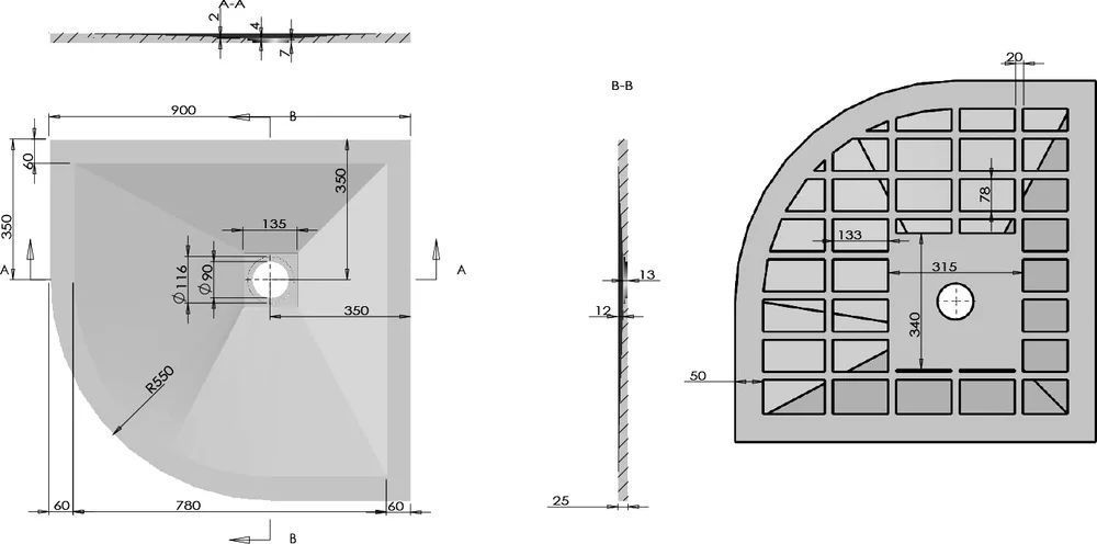 Поддон каменный Vincea 900х900х25 мм. Цвет - серый, материал - искусственный камень. Сифон приобретается отдельно.