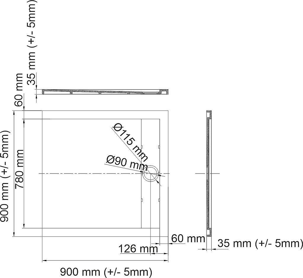Поддон каменный WasserKraft Mindel 900х900х35 мм. Цвет - белый матовый, материал - искусственный камень.