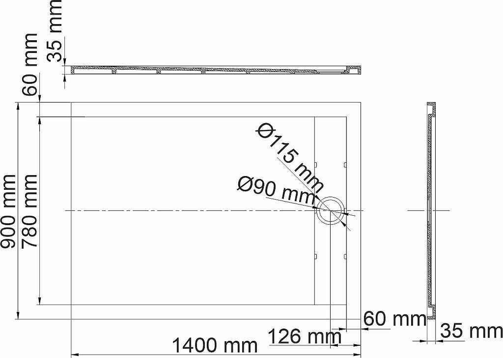 Поддон каменный WasserKraft Neime 1400х900х40 мм. Цвет - чёрный мрамор, материал - искусственный камень.