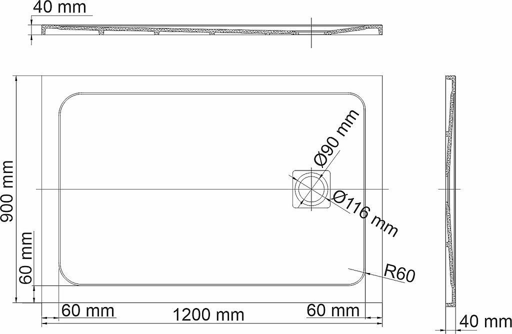 Поддон каменный WasserKraft Rhin 1200х900х40 мм. Цвет - белый мрамор, материал - искусственный камень.