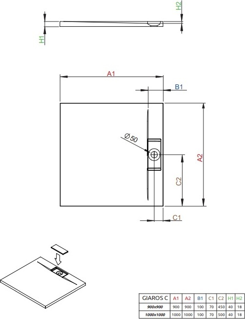 Душевой поддон Radaway Giaros C90 900*900*40 мм. Цвет - белый, материал - литьевой мрамор. Отверстие под сифон - 50 мм. Ножки в комплекте.