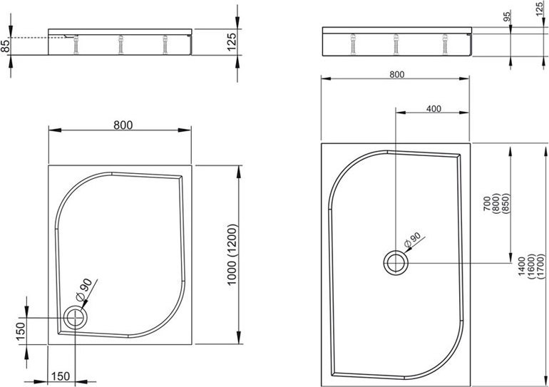 Душевой поддон Radaway Paros D1700 1700*800*40 мм. Цвет - белый, материал - литьевой мрамор. Отверстие под сифон - 90 мм.