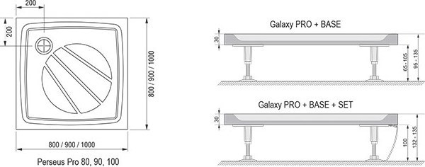 Душевой поддон Ravak Galaxy Pro Perseus 90х90 см низкий, квадратный, материал литой мрамор, диаметр сифона 9 см, цвет белый.