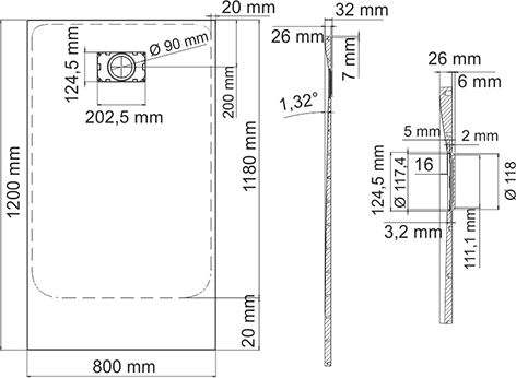 Поддон SMC WasserKraft Main 1200*800*26 мм. Цвет - белый, материал - SMC (стеклопластик). Сифон в комплекте Ø 90 мм.