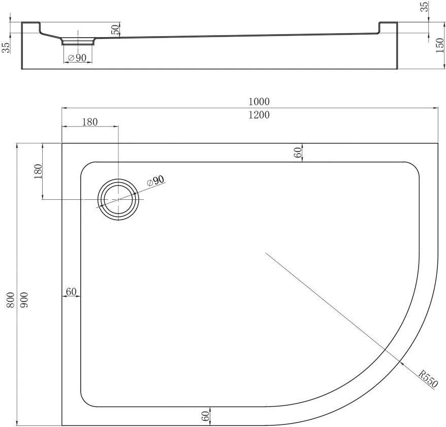 Душевой поддон Veconi TZ-55LB, размер 120х80 см, материал акрил, сифон в комплекте, цвет чёрный.