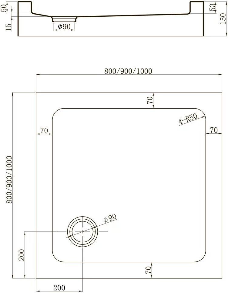Душевой поддон Veconi Tezeo TZ-52B, размер 80х80 см, квадратный, материал акрил, сифон в комплекте, цвет черный.