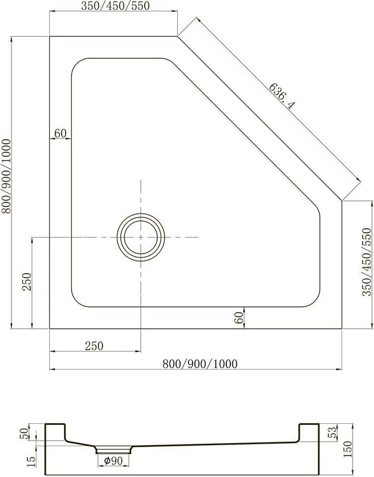 Душевой поддон Veconi Tezeo TZ-53B, размер 80х80 см, пентагональный, материал акрил, сифон в комплекте, цвет черный.