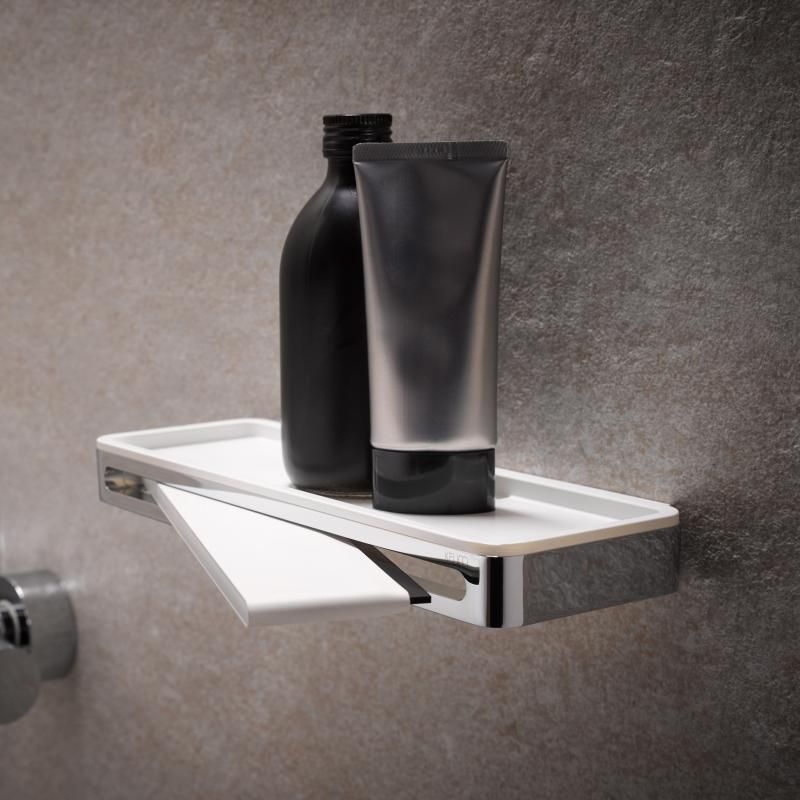 Полка Keuco Plan с стеклоочистителем, материал латунь/пластик, цвет хром/белый.