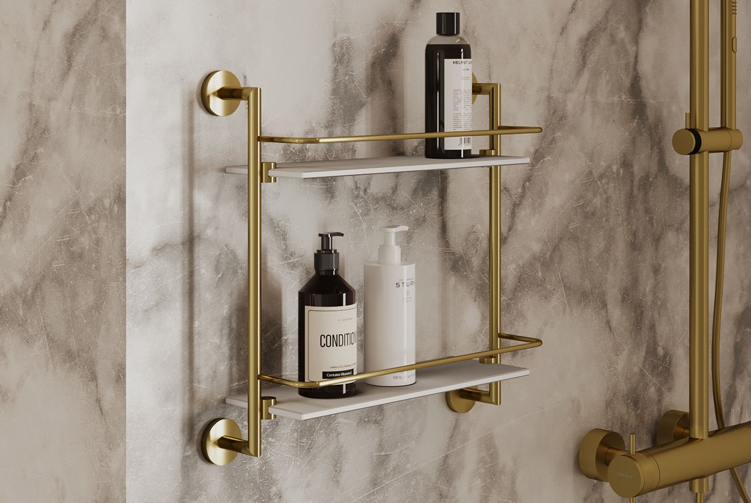 Полка стеклянная для туалетных принадлежностей Allen Brau Priority 6.31015-GB, материал латунь/стекло, цвет золото.