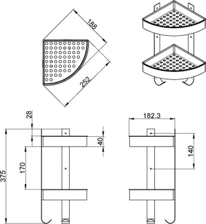 Полка угловая Azario AZ-833-2, материал нержавеющая сталь/пластик, цвет хром.
