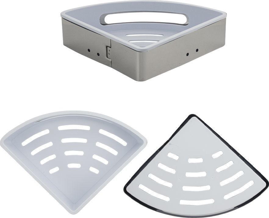 Полочка для принадлежностей, угловая, с литым дном, однаэтажная, с белым пластиковым вкладышем, обладает высокими эксплуатационными характеристиками и подходит для использования дома, в общественных местах: отелях, ресторанах и пр. Изготовлена из нержавеющей стали с хромированным покрытием, которое придает безупречный вид и долговечность. Аксессуар не занимает много места, надежно фиксируется к стене при помощи набора креплений (входят в комплект) и служит удобным местом для хранения бытовых и косметических средств. Габаритные размеры: длина 230 мм, высота 60 мм, ширина 310 мм. Вес - 0,700 кг, объём - 0,00500 м3.