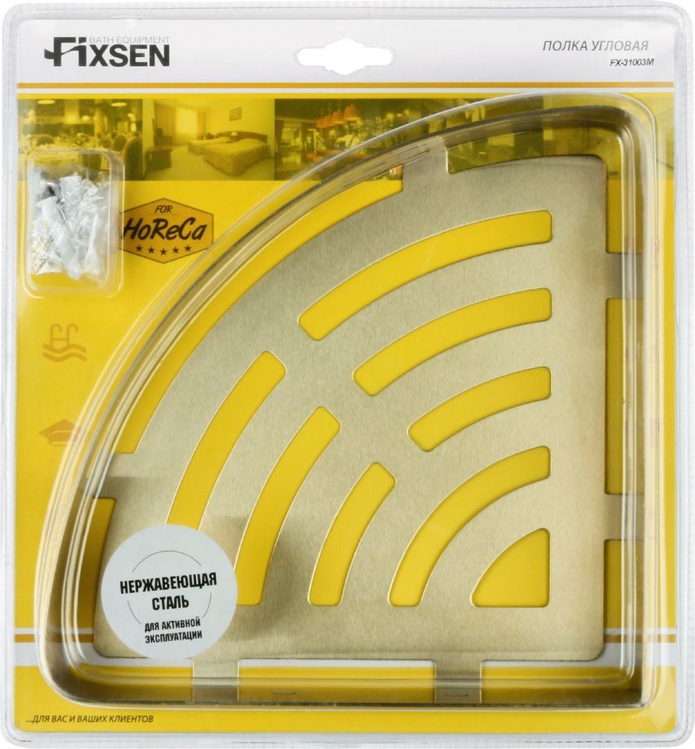 Полка угловая Fixsen Hotel FX-31003L, материал нержавеющая сталь, цвет золото.