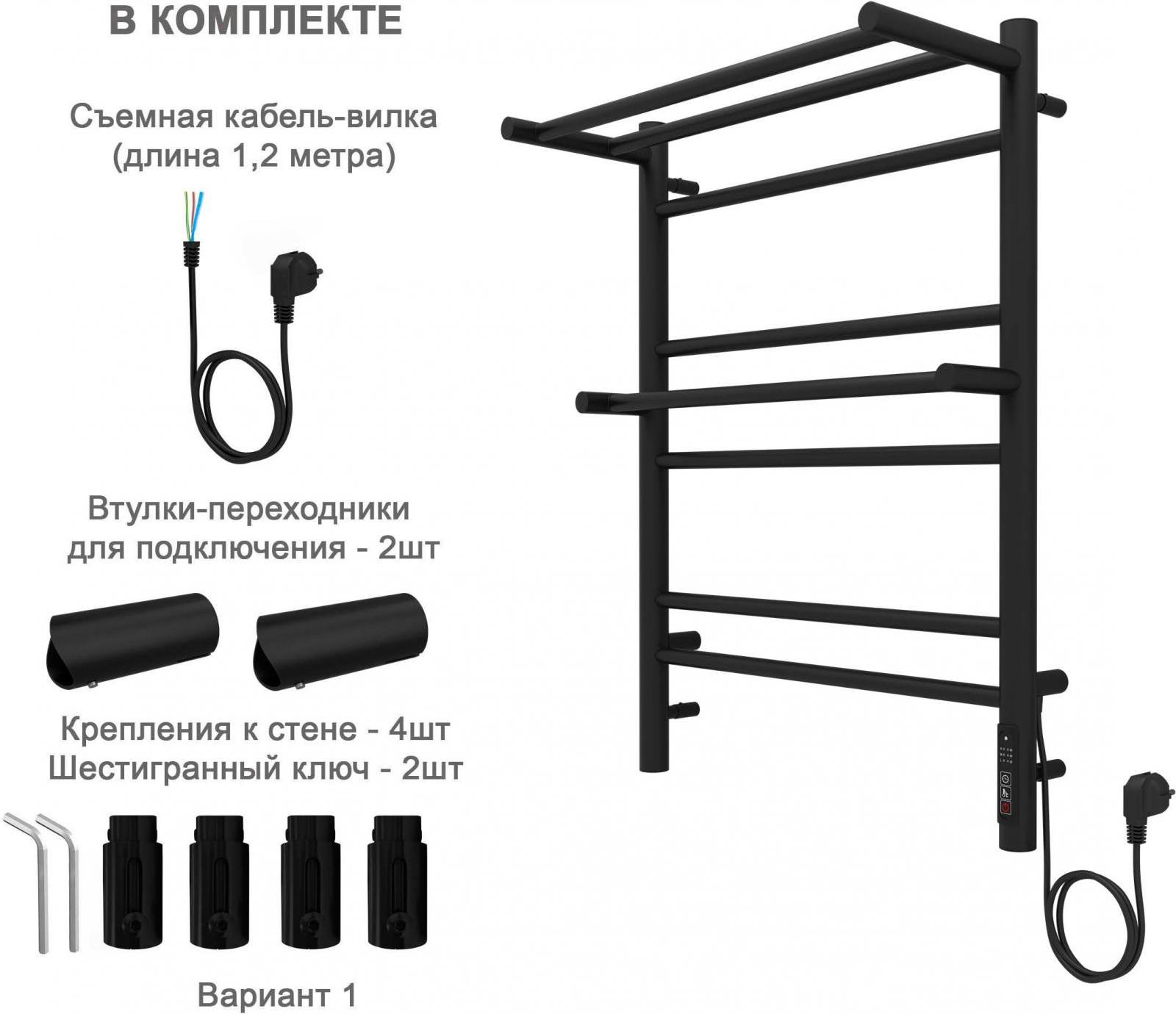 Полотенцесушитель электрический Aquatek Альфа с полкой П7 500х700 мм AQ EL RRP0770BL чёрный муар