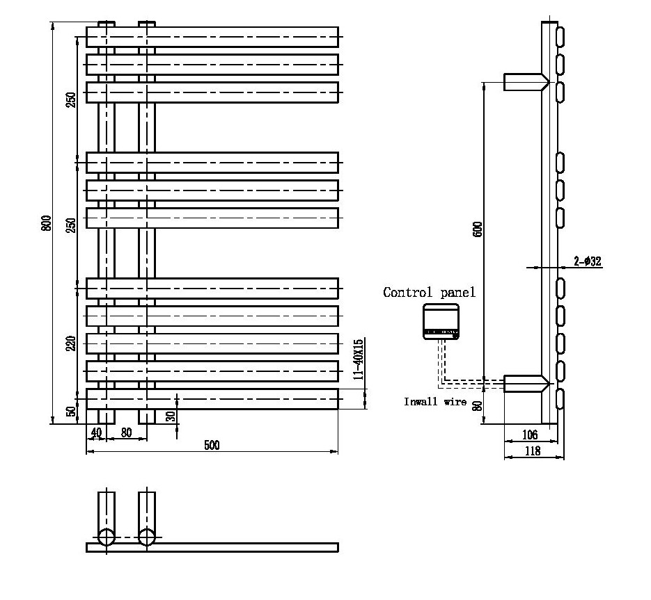 Полотенцесушитель электрический Boheme Venturo 723-BR, размер 500x800 мм, 11 перекладин, скрытое подключение слева, цвет бронза.