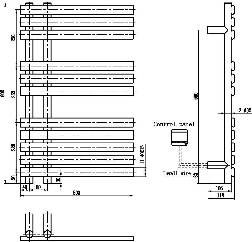 Полотенцесушитель электрический Boheme Venturo П11 80x800 мм 723-GM, gun metal