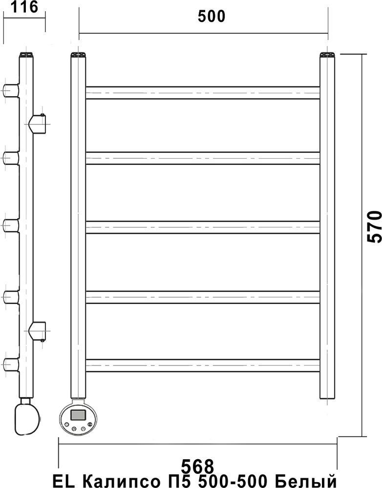 Полотенцесушитель электрический Domoterm Калипсо, 5 перекладин, мощность 300 Вт. Цвет белый.
