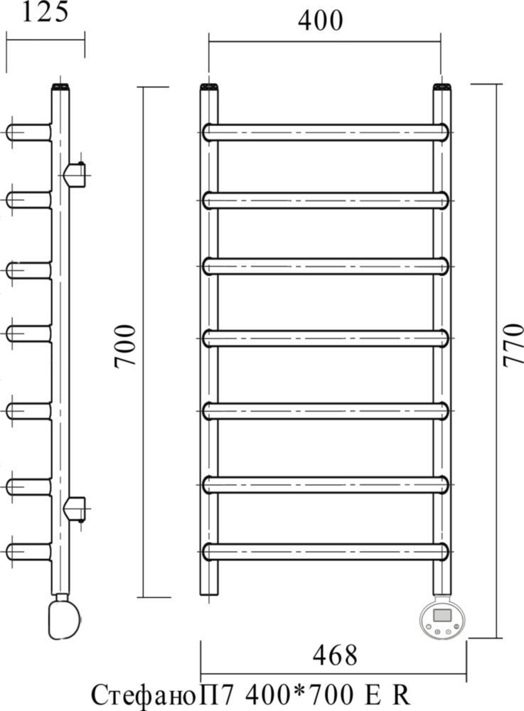 Полотенцесушитель электрический Domoterm Стефано, 7 перекладин, мощность 300 Вт.