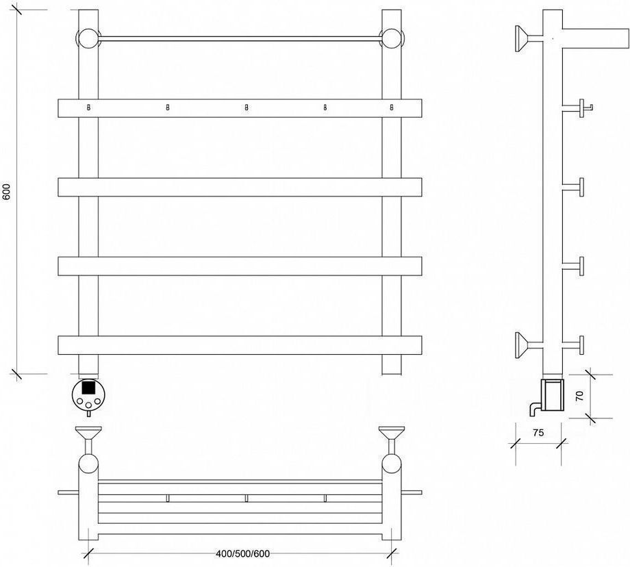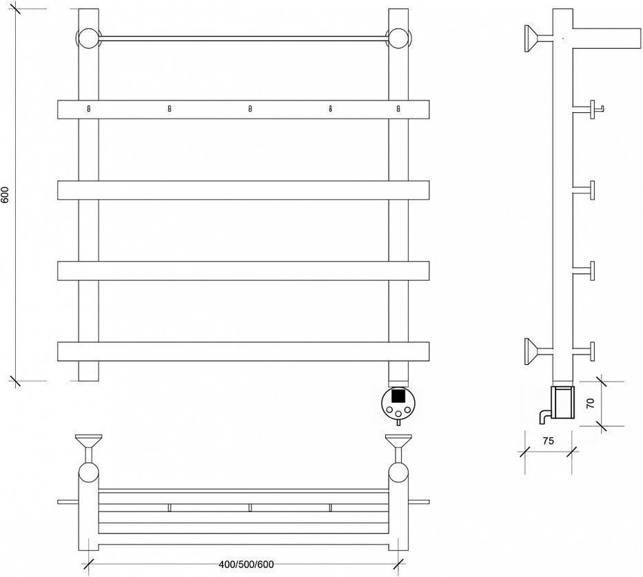 Полотенцесушитель электрический Secado Понтида 1 КСП с полкой П5 600x600 мм (возможность скрытого подключения) - фото