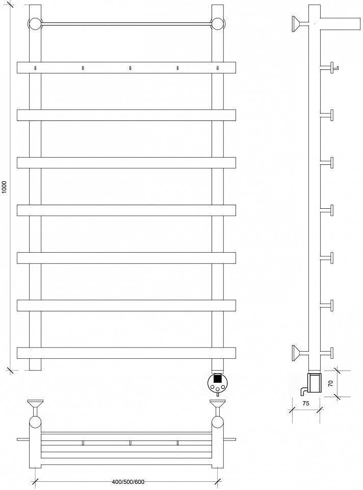 Полотенцесушитель электрический Secado Понтида 1 КСП с полкой П8 500x1000 мм (возможность скрытого подключения)