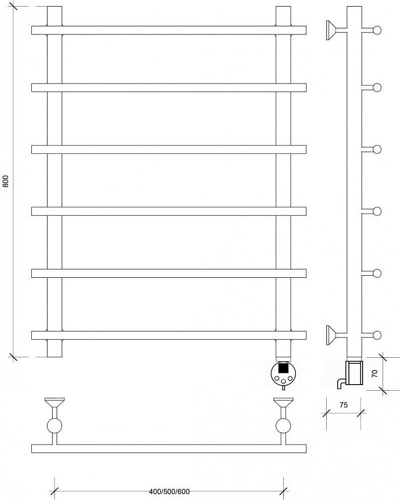 Полотенцесушитель электрический Secado Турин 1 П6 500x800 мм (возможность скрытого подключения) бронза