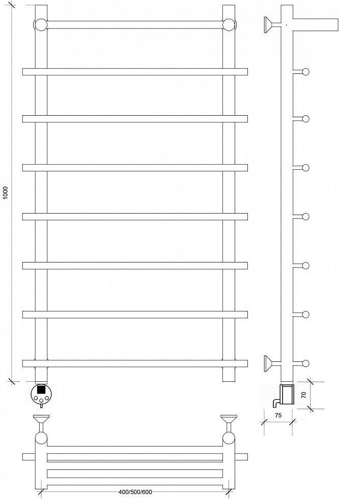 Полотенцесушитель электрический Secado Турин 1 СП с полкой П8 500x1000 мм (возможность скрытого подключения) бронза