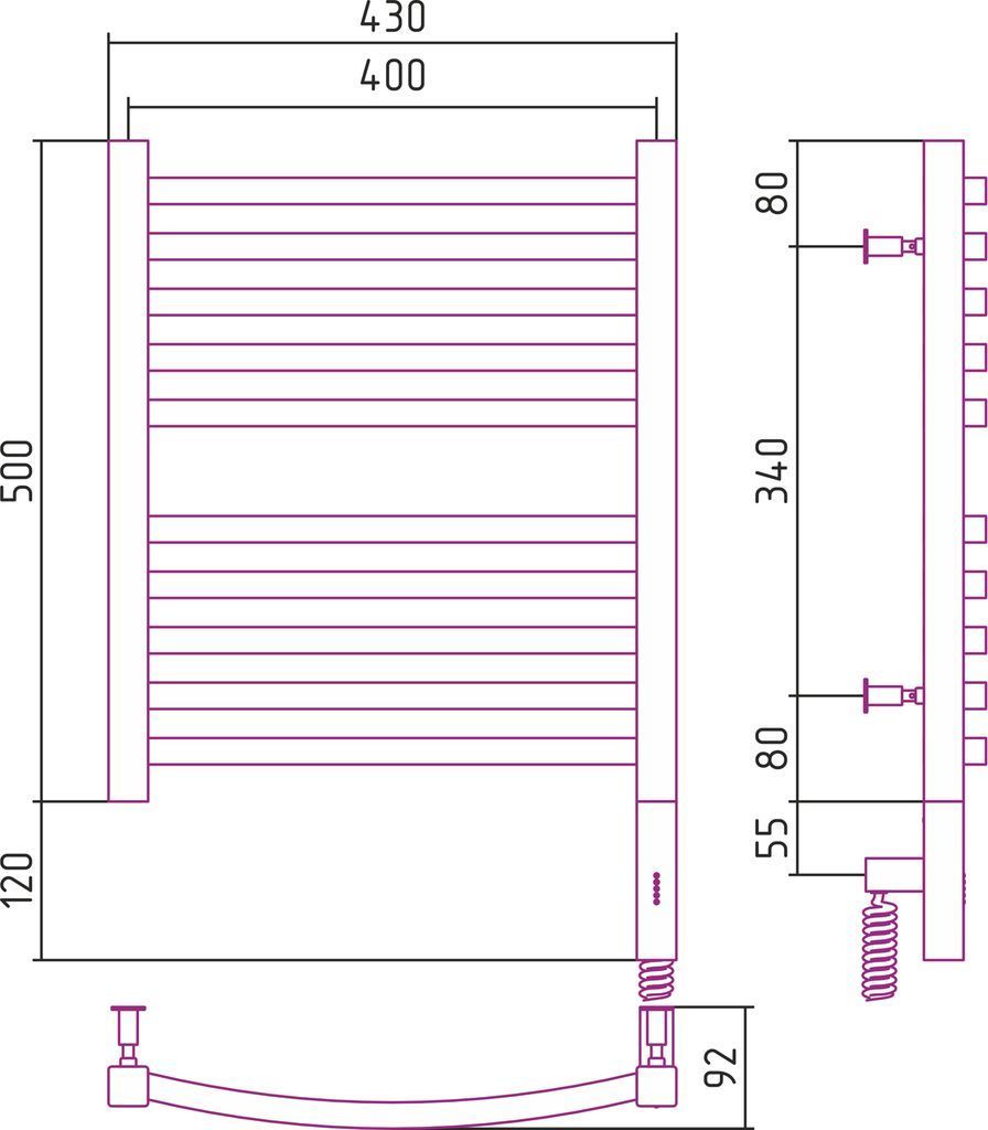 Полотенцесушитель электрический Сунержа Аркус 3.0, размер 620х430 мм, 10 перекладин(5-5). Мощность 300 Вт. Интегрированное в корпус скрытое подключение.
