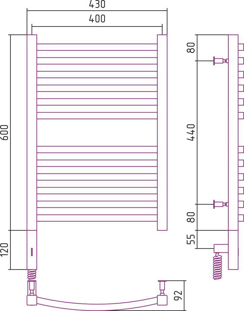 Полотенцесушитель электрический Сунержа Аркус 3.0 П12 600x400 мм 00-5704-6040 L