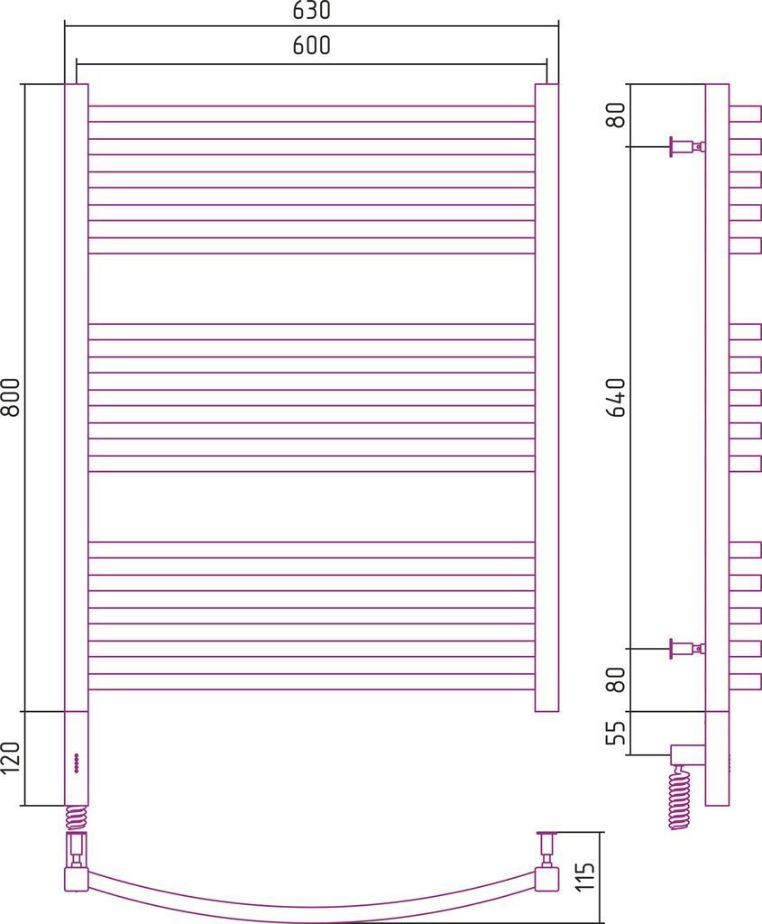 Полотенцесушитель электрический Сунержа Аркус 3.0 П15 800x600 мм 00-5704-8060 L