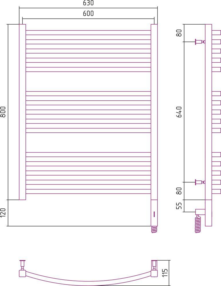 Полотенцесушитель электрический Сунержа Аркус 3.0 П15 800x600 мм 31-5705-8060 R, чёрный матовый