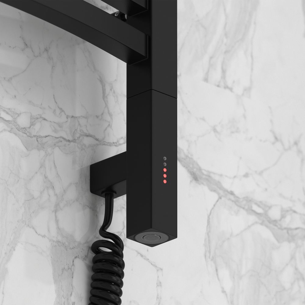 Полотенцесушитель электрический Сунержа Аркус 3.0, размер 1120х630 мм, 16 перекладин(4-4-4-4). Мощность 300 Вт, цвет чёрный матовый. Интегрированное в корпус скрытое подключение.