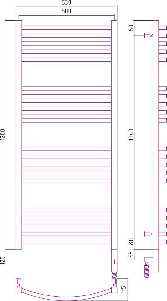 Полотенцесушитель электрический Сунержа Аркус 3.0, размер 1320х630 мм, 20 перекладин(5-5-5-5). Мощность 300 Вт. Интегрированное в корпус скрытое подключение.