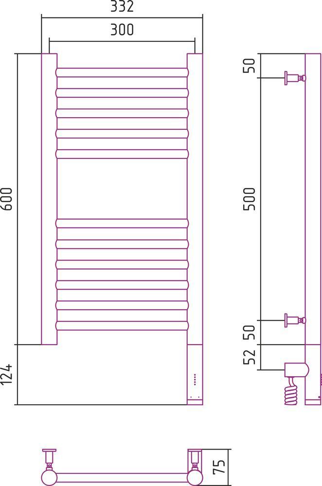 Электрический полотенцесушитель Сунержа Богема 3.0 600х300 мм, 11 перекладин(5-6). Мощность 300 Вт, цвет состаренная бронза. Интегрированное в корпус скрытое подключение.