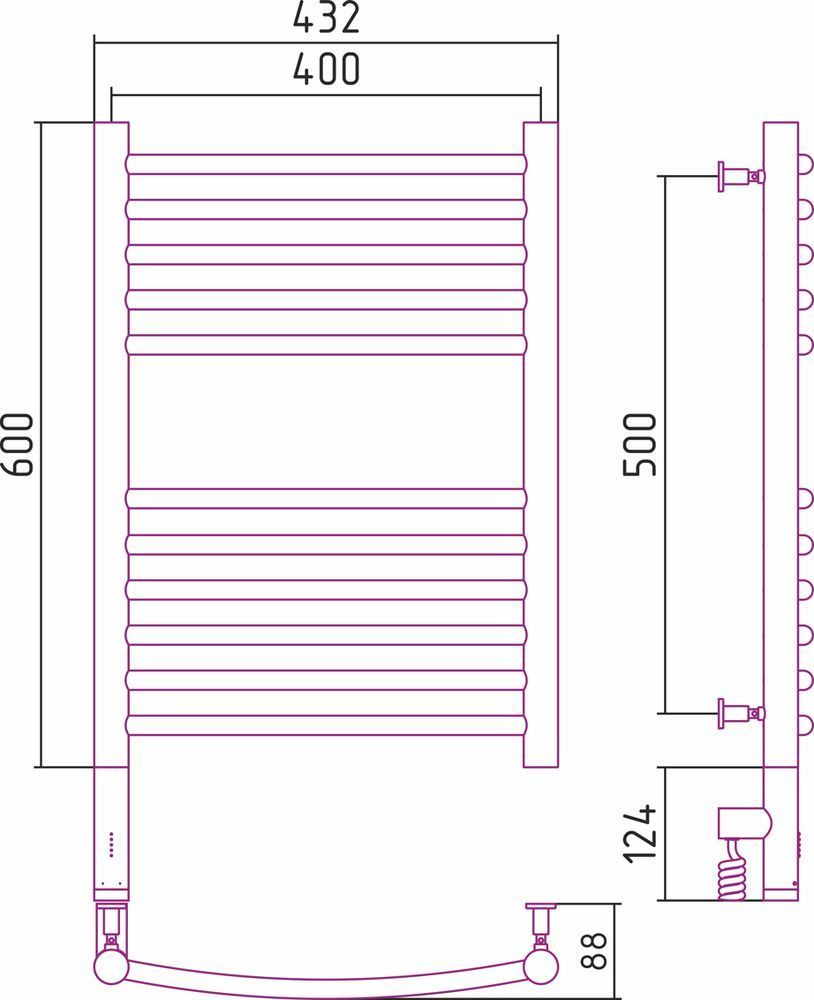 Полотенцесушитель электрический Сунержа Богема 3.0 П11 600x400 мм (выгнутая перемычка) 00-5802-6040 L