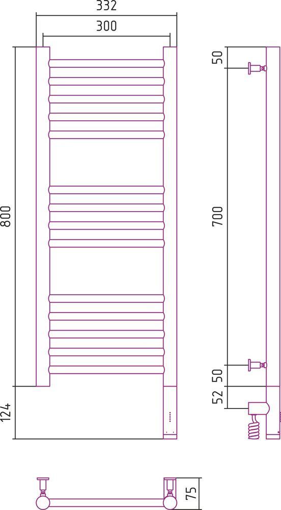 Электрический полотенцесушитель Сунержа Богема 3.0 800х300 мм, 14 перекладин(5-4-5). Мощность 300 Вт, цвет белый. Интегрированное в корпус скрытое подключение.