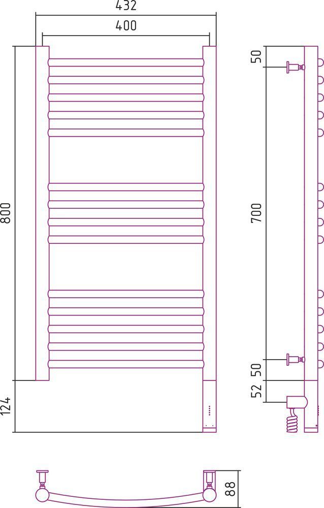 Электрический полотенцесушитель Сунержа Богема 3.0 800х400 мм, 14 перекладин(5-4-5). Мощность 300 Вт, цвет золото. Интегрированное в корпус скрытое подключение.