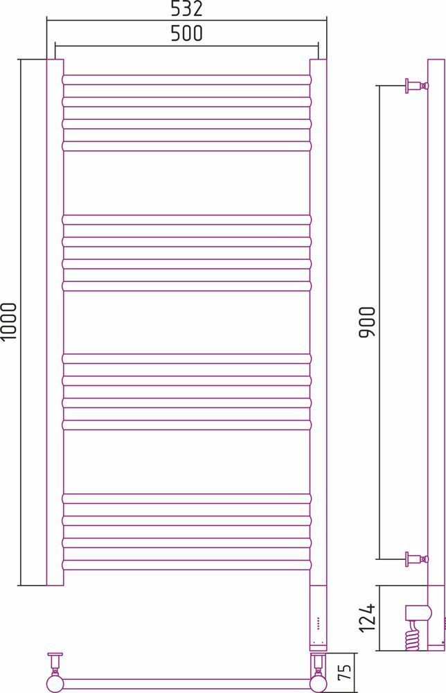 Полотенцесушитель электрический Сунержа Богема 3.0 П16 1000x500 мм (выгнутая перемычка) 00-5803-1050 R