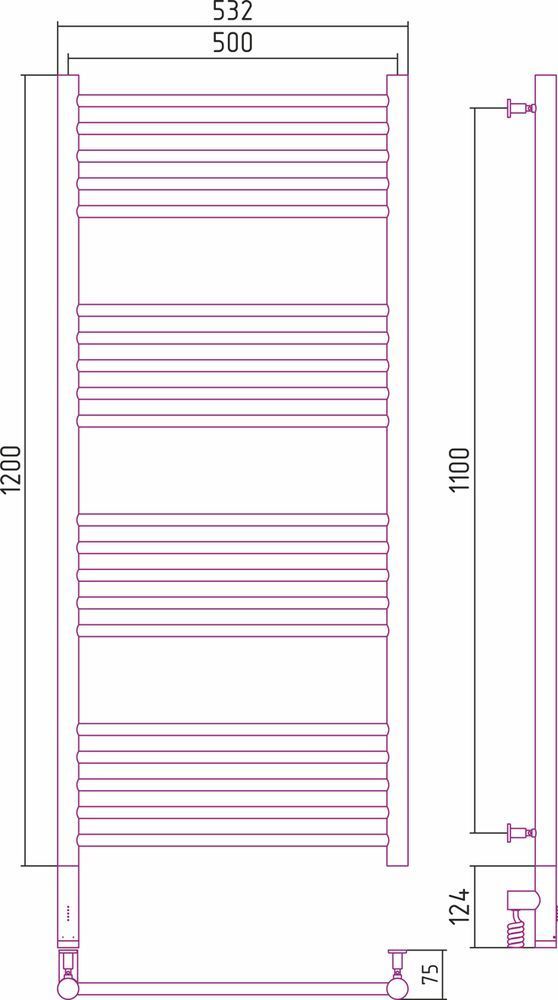 Полотенцесушитель электрический Сунержа Богема 3.0 П20 1200x500 мм (прямая перемычка) 00-5804-1250 L