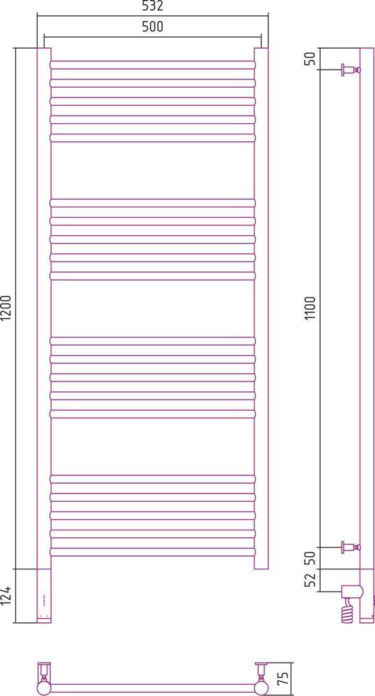 Электрический полотенцесушитель Сунержа Богема 3.0 1200х500 мм, 20 перекладин(5-5-5-5). Мощность 300 Вт, цвет белый матовый. Интегрированное в корпус скрытое подключение.