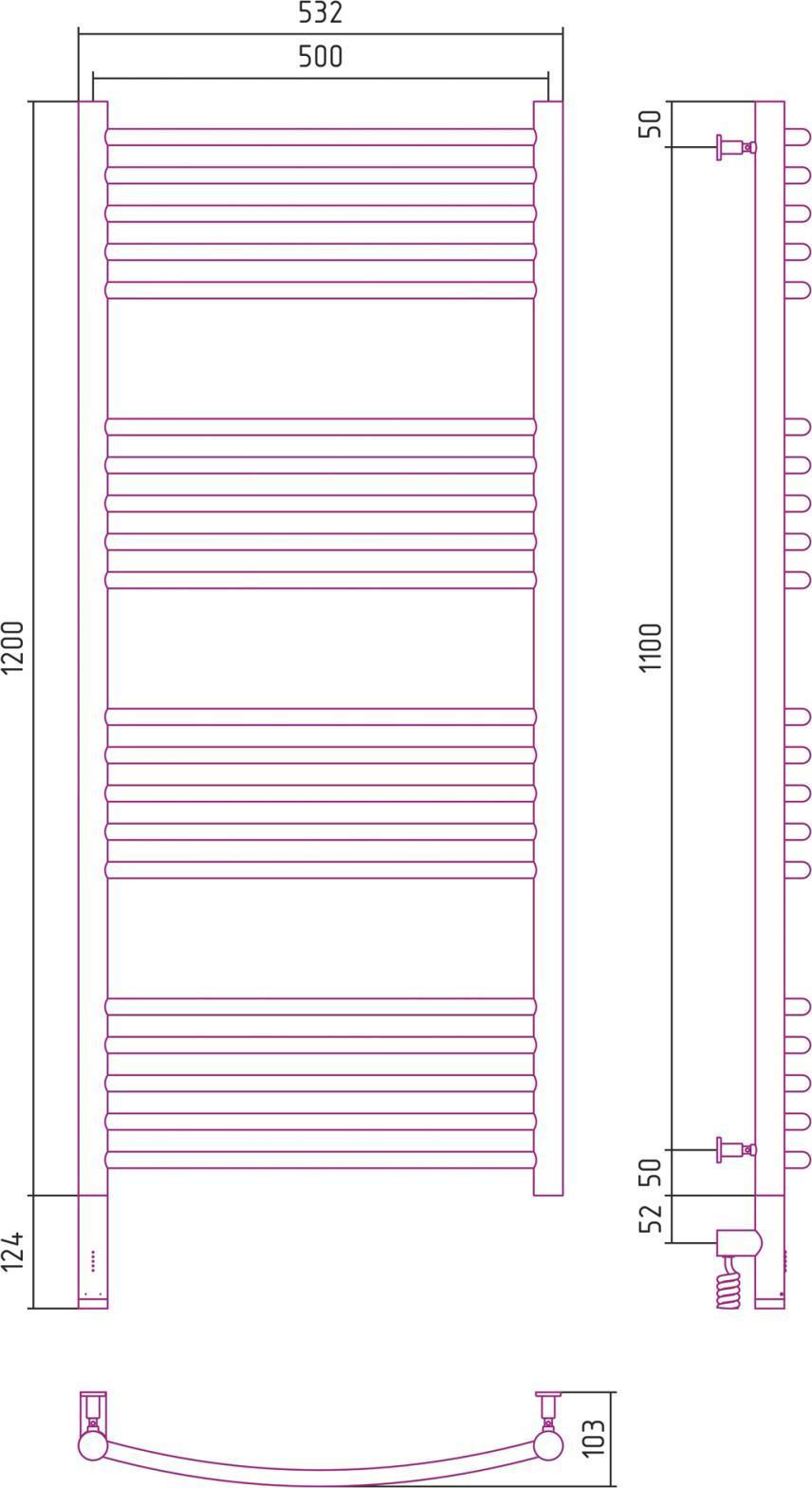 Полотенцесушитель электрический Сунержа Богема 3.0 П20 1200x500 мм (выгнутая перемычка) 30-5802-1250 L, белый матовый