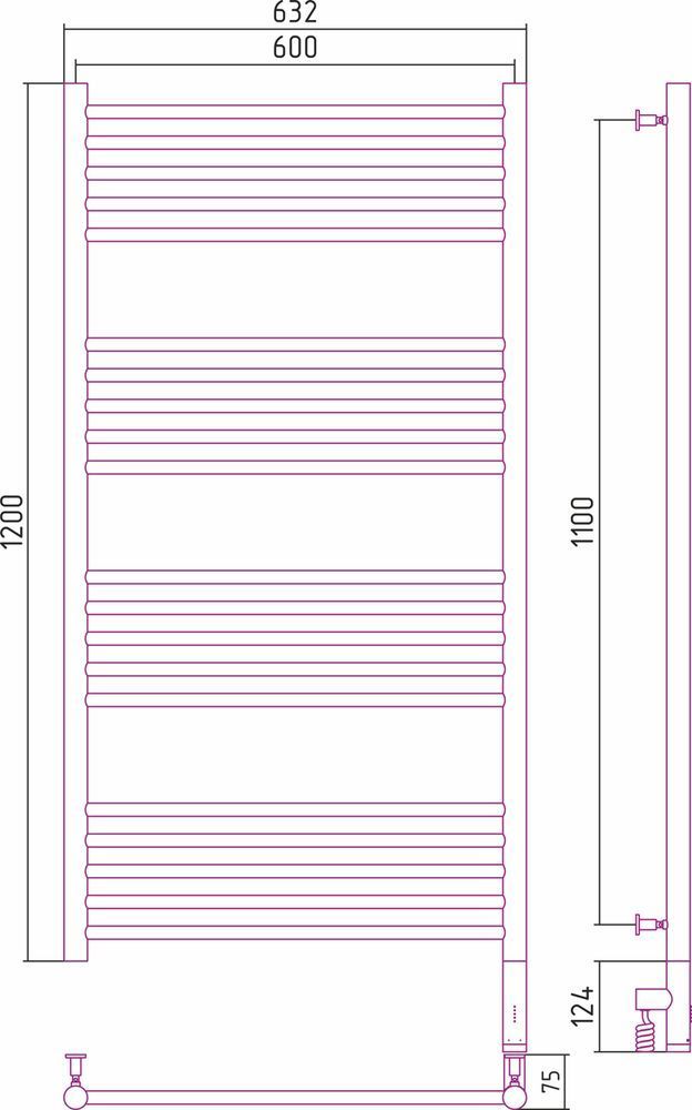 Полотенцесушитель электрический Сунержа Богема 3.0 П20 1200x600 мм (прямая перемычка) 00-5805-1260 R
